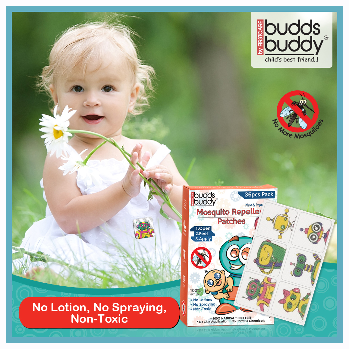 BuddsBuddy Mosquito Repellent Patch (you can buy them at Amazon.inhelps in repelling mosquitoes for up to 12 hours. They are made of 100% natural ingredients; completely chemical & deet-free and non-toxic.