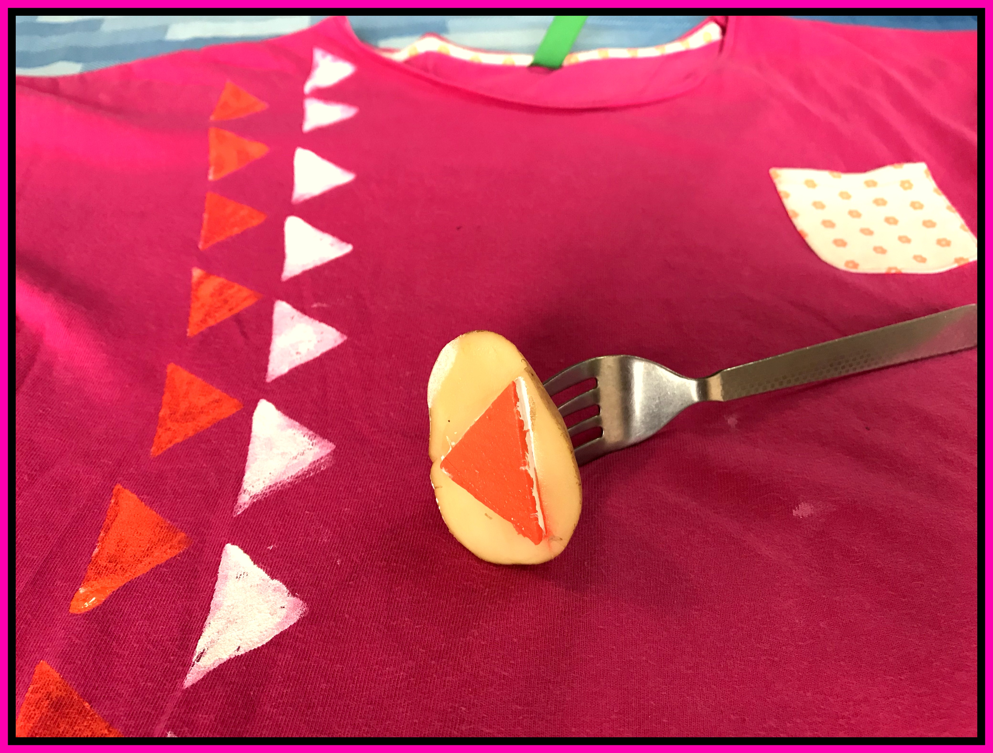 - Firstly, I made a block for colouring by carving out a simple triangle in the potato.