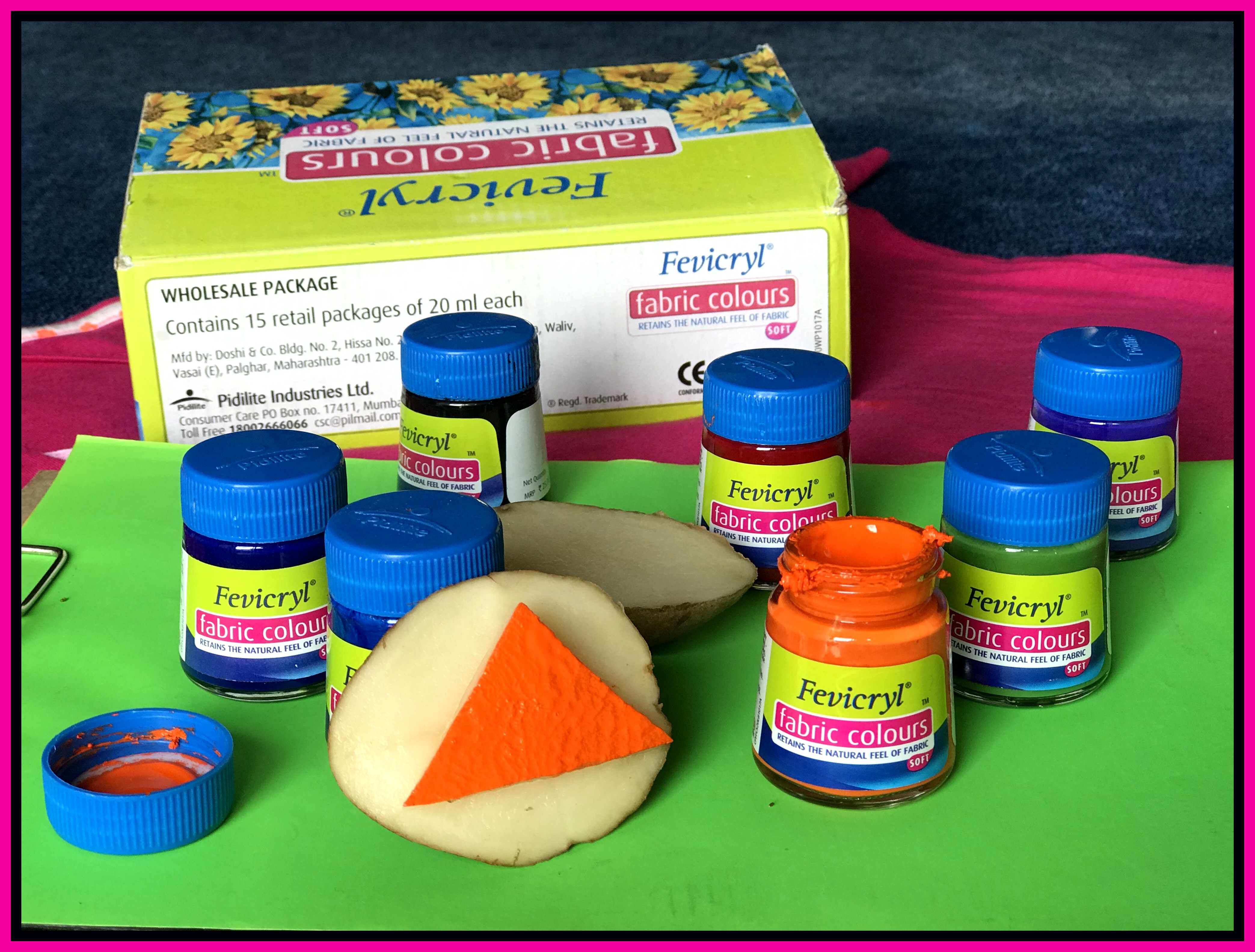 - Use the newly launched Fevicryl Fabric Colours only to paint on a fabric of your choice.