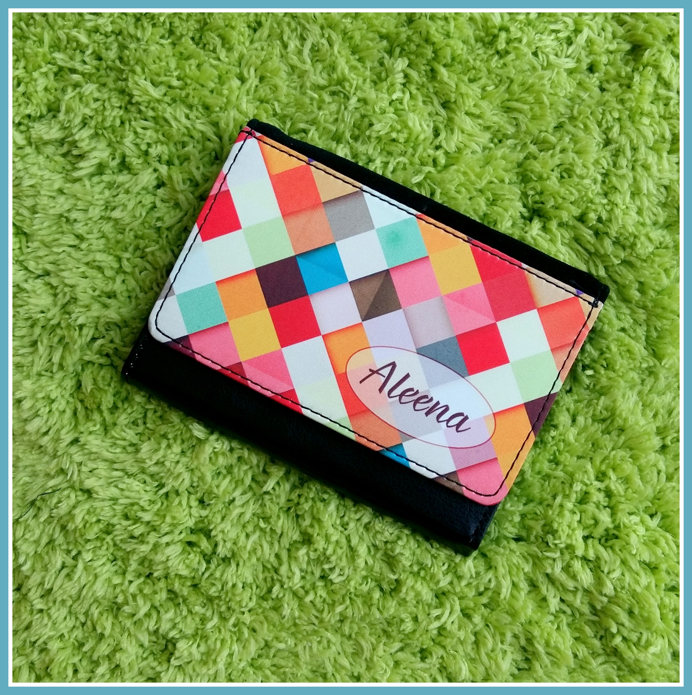 This is the cutest of all. She got a square one but there are other shapes available in various designs and patterns. Her name and initial is printed on the centre of the cover.