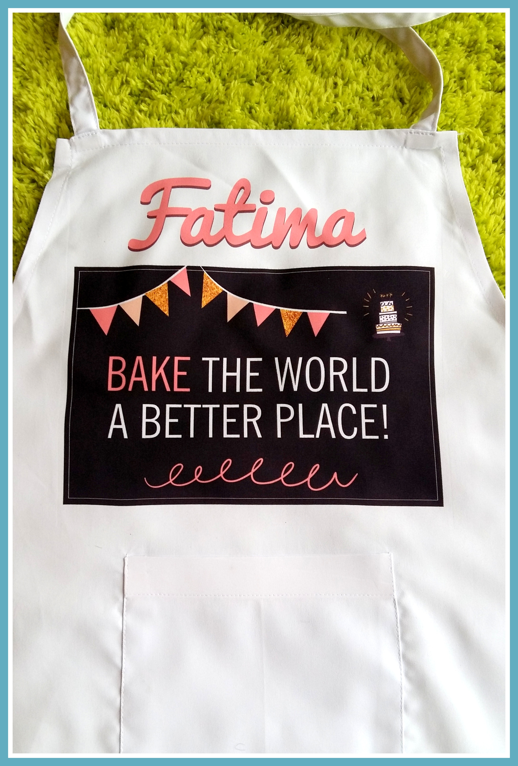 The other one I got for my niece Fatima has an equally whacky message – BAKE the World a Better Place and it left us in splits.
