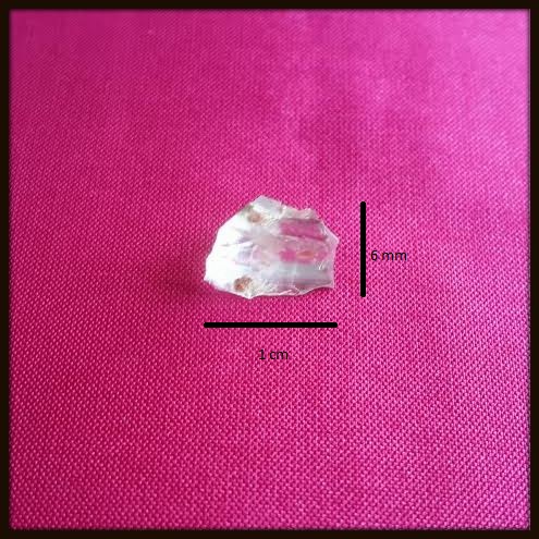 The glass piece is 1 cm long and 0.6 cm broad.