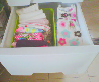 So here is what I do to make sure that Zayb’s clothes and essentials are sorted, organized and easily accessible. We have a plastic drawer system with 6 mid sized drawers for the clothes and stuff in use. The stuff that she has outgrown and is still to fit in is stored in another area. I will get in to that some other time.
