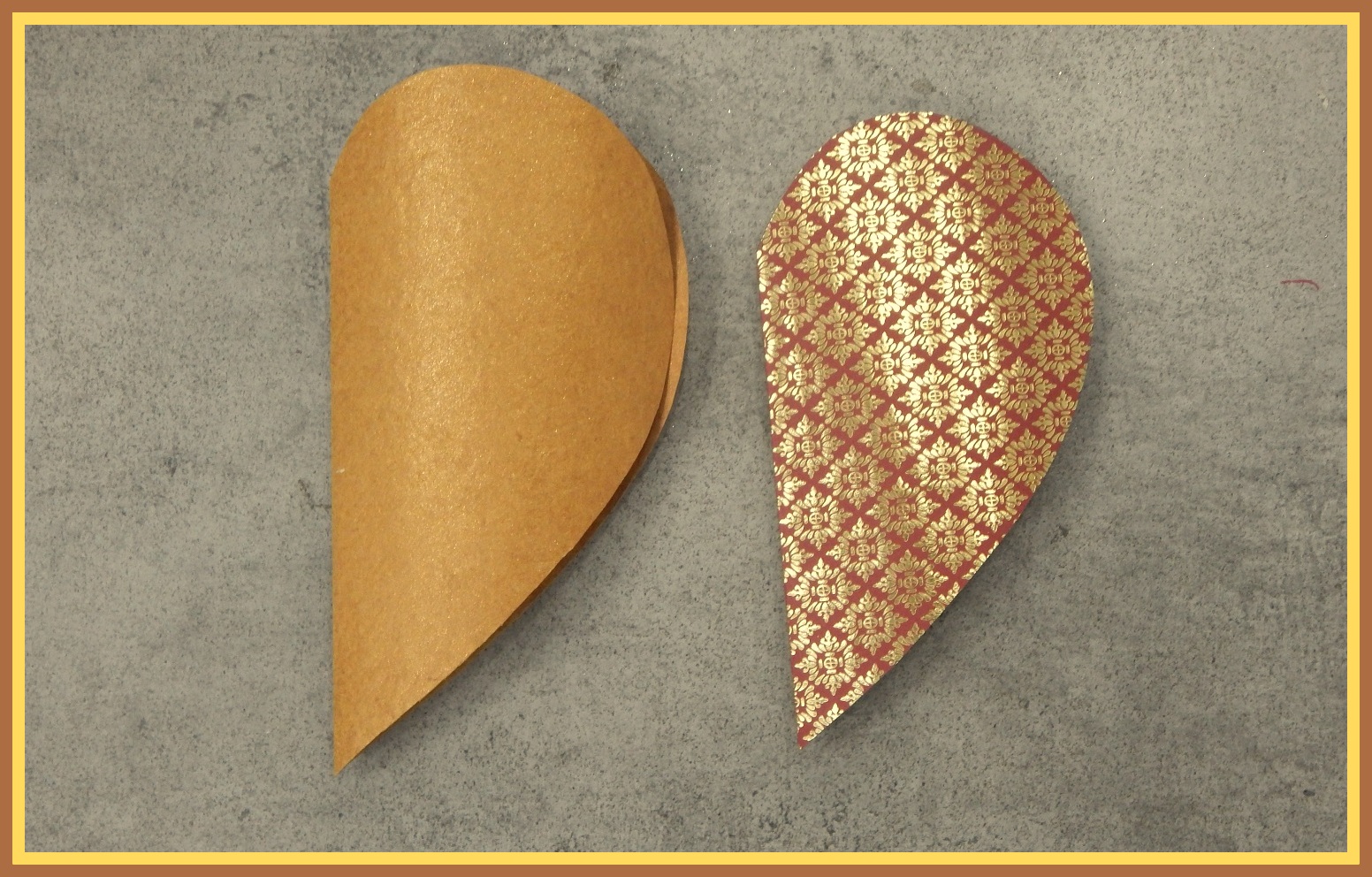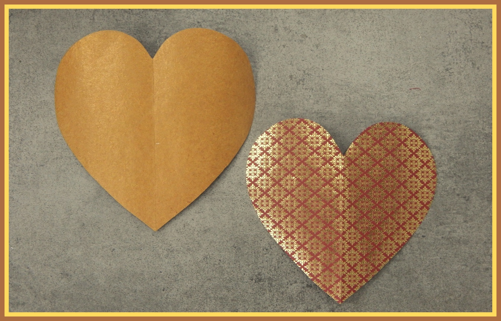 – Cut it along the outline. Similarly draw a heart on the red coloured embossed paper.