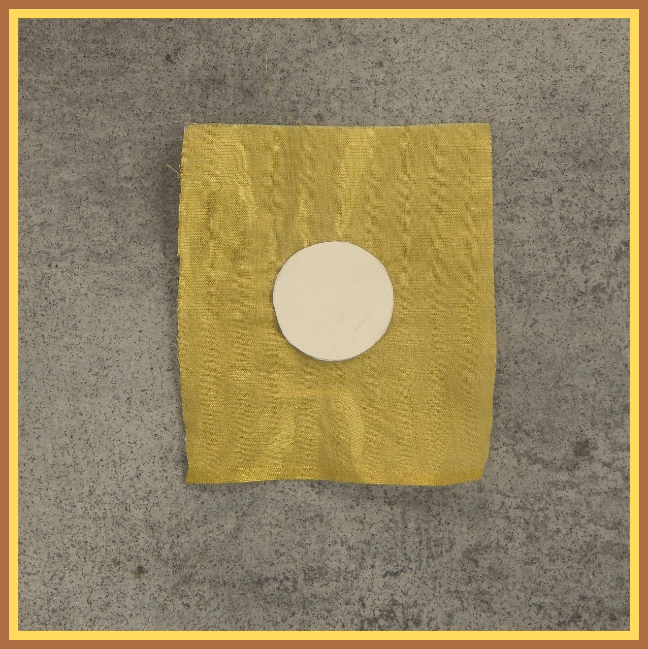 – Take the mount board circle and cut the tissue cloth leaving one inch extra from all across the circumference.