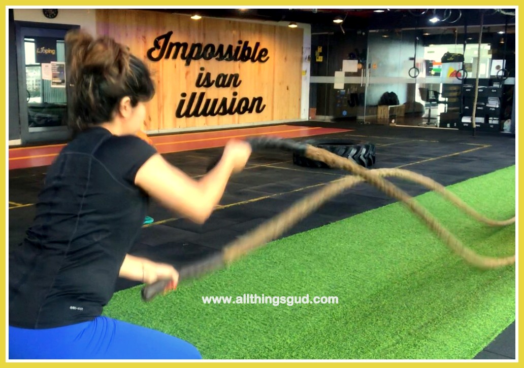 People were doing activities which typically are not categorised under ‘gyming’ per se. They were flipping tyres, spinning heavy ropes, smashing sand balls on the ground, hitting tyres with a huge hammer, pushing loaded carts and doing a lot of other unconventional stuff.